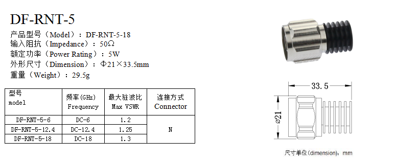Coaxial Fixed Terminations Series 50Ω 5w Connector N DC-18 Max VSWR1.3 21×33.5mm